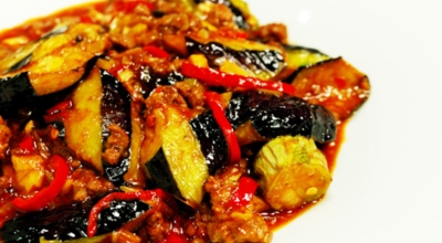 가지 4개, 다진 돼지고기 300g, 맛술 3큰술, 소금 1작은술, 후춧가루 2꼬집, 고춧가루 2 큰술, 설탕 2 큰술, 식초 2 큰술, 굴소스 2 큰술, 간장 2 큰술, 고추기름 4큰술, 마늘 40g, 생강 5g, 대파 50g, 소주 3큰술, 청양고추 2개, 홍고추 2개, 전분물(물4큰술+감자전분2 큰술)