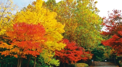 단풍은 기온이 떨어지면서 잎 속 엽록소의 분해로 노란 색소인 카로티노이드(Carotenoid) 색소가 드러나게 되면 노란색으로, 광합성 산물인 잎 속의 당분으로부터 많은 효소 화학반응을 거쳐 안토시아닌(Anthocyanin) 색소가 생성되면 붉은색으로 나타나게 되며, 타닌(Tannin)성 물질이 산화 중합되어 축적되면 갈색이 나타나게 되는 현상입니다.