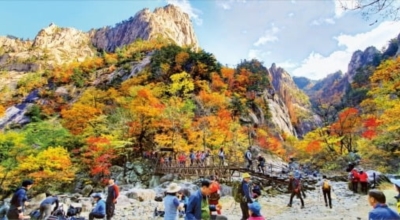 사계절 아름답지만 설악산 단풍시기에는 그 위상이 더더욱 빛나는 산입니다. 기암괴석과 우뚝 솟은 암봉, 계곡을 품고 있는 명산인데요 대청봉을 시작으로 공룡능선이 물들고 옥녀탕까지 순차적으로 단풍이 들어요. 단풍은 10월 상순에서 10월 중순 사이로 예상되어요. 특히 공룡능선은 설악산 단풍 산행의 으뜸으로 꼽힙니다.