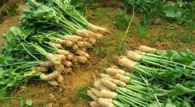 보통 알타리무는 파종 후 50~60일 정도 자라면 뿌리의 크기가 10~15cm 정도로 비대하며 수확시기가 도래하게 되는데 가능하면 다소 이른 시기에 수확해야 뿌리가 연하고 씹는 맛이 좋습니다.또한 가뭄으로 알타리무 재배밭의 토양이 건조해지면 생육이 부실해지고 알타리무가 맵고 쓴맛이 강해지므로 가뭄이 보존되면 수시로 물을 주어야 합니다. 알타리무는 수학하기 전 일주일 전에는 물을 끊어줘야 맛있는 알타리무가 생산됩니다. 총각무는 수학 시기가 되면 잎이 약간 시들면서 눕는 경향이 보이네요. 이 때에 수학을 하면됩니다.