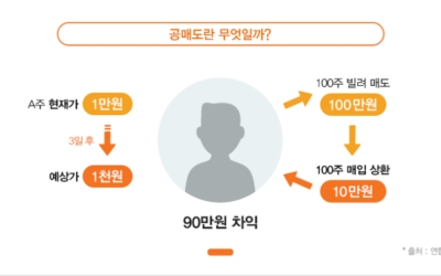 주식시장에서 공매도는 향후 주가가 하락할 것으로 예상되는 종목의 주식을 빌려서 매도(주식을 파는 행위)한 뒤 실제로 주가가 하락하면 싼값에 되사들여 빌린 주식을 갚아서 차익을 얻는 매매기법입니다. 공매도는 하락장에서 수익을 내기 위한 투자기법으로 주가가 하락하면 이익을 얻고 상승하면 반대로 손해보게 되어요. 이러한 공매도는 주식시장에 유동성을 공급하지만 시장 질서를 교란하고 불공정거래 수단으로 악용되기도 해요.