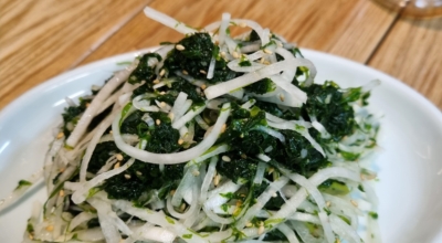 파래에 순수하지 않은 물질이 있을 수 있으며 비린 맛이나 짠 맛을 씻어주기 위해 물에 깨끗하게 씻어줘요. 씻을 때는 소금을 살짝 넣어서 조물조물하여 찬물에서 헹궈 줍니다. 파래무침에 무채도 썰어서 같이 무치면 아삭아삭 식감맛도 있고 더 맛있답니다.