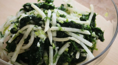 재료:물 파래 3 덩이, 천일염 1T, 무 200g, 당근 30g, 대파 흰 부분 약간양념:소금 1/2T, 자일로스 설탕 1T, 양조식초 3T, 매실청 2T, 참치액젓이나 까나리액젓 1T, 국간장 1T, 통깨, 참기름