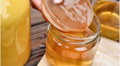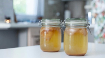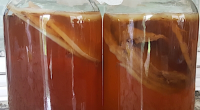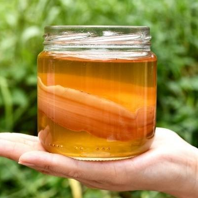 콤부차 재료: 물 1L , 홍차 60g, 설탕 70g, 스코비 1개, 저온 살균된 사과식초 312ml