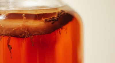 콤부차는 1~2주 동안의 발효 과정에서 탄산음료를 생성해요. 콤부차는 발효과정 중 차 안에 든 설탕이 스코비라는 것에 의해서 분해되어 프로바이오틱스라는 박테리아를 내보냅니다. 건강한 생활을 추구하는 사람들이 많이 늘어난 요즘, 전통적인 차에 이어 각광 받는 것이 바로 이 콤부차이지요.