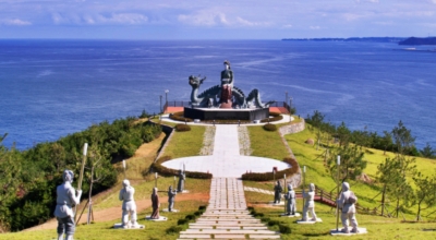 공원 내에는 수로 부인의 전설을 모티브로 한 조각품과 그림이 야외 전시장처럼 배치되어 있어요. 산책로, 부두, 전망대, 쉼터 등이 갖춰져 있어 바다와 함께 조망을 즐길 수 있습니다. 사진을 가장 많이 찍는 곳이 바로 그 거대한 여인상이 있는 곳이라고 합니다.