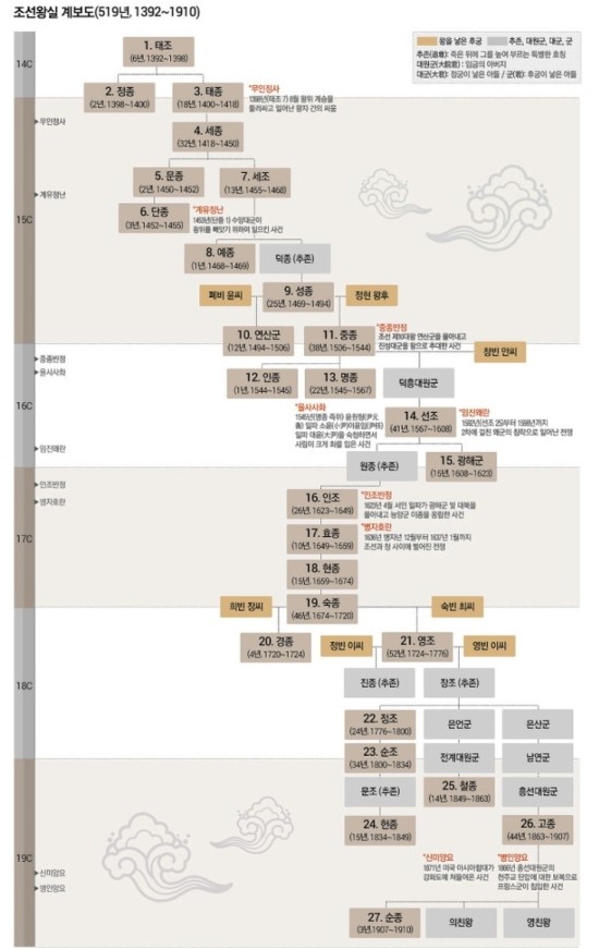 조선왕조 계보 순서와 왕 특징 정리