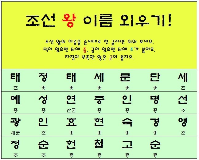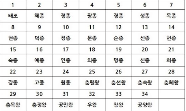 태정태세문단세 (태조-정종-태종-세종-문종-단종-세조)