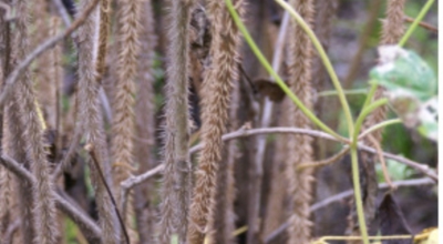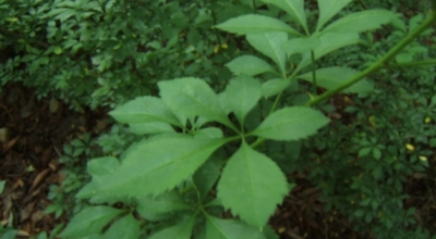 두릅나무과에 분류되는 식물. 원산지는 한국과 중국, 일본 등이며, 우리나라에서는 전국적으로 분포해요. 키는 3~4m이고 밑에서 가지가 많이 갈라지며, 줄기 전체에 가늘고 긴 가시가 많아요. 잎은 어긋나는데 3~5장의 잔 잎이 손바닥 모양으로 배열되며 가장자리에 잔 겹톱니가 있답니다. 8~9월에 자주색의 꽃은 가지 끝에 산형꽃차례를 이루며 핀다. 꽃잎은 5장이며 꽃받침 겉에 털이 있답니다.